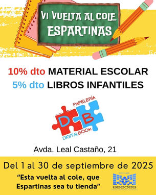 Durante el mes de septiembre de 2025, disfruta de promociones, ventajas y descuentos exclusivos en productos, servicios y actividades ofrecidas por empresas de Espartinas, tanto con tienda física como sin ella.